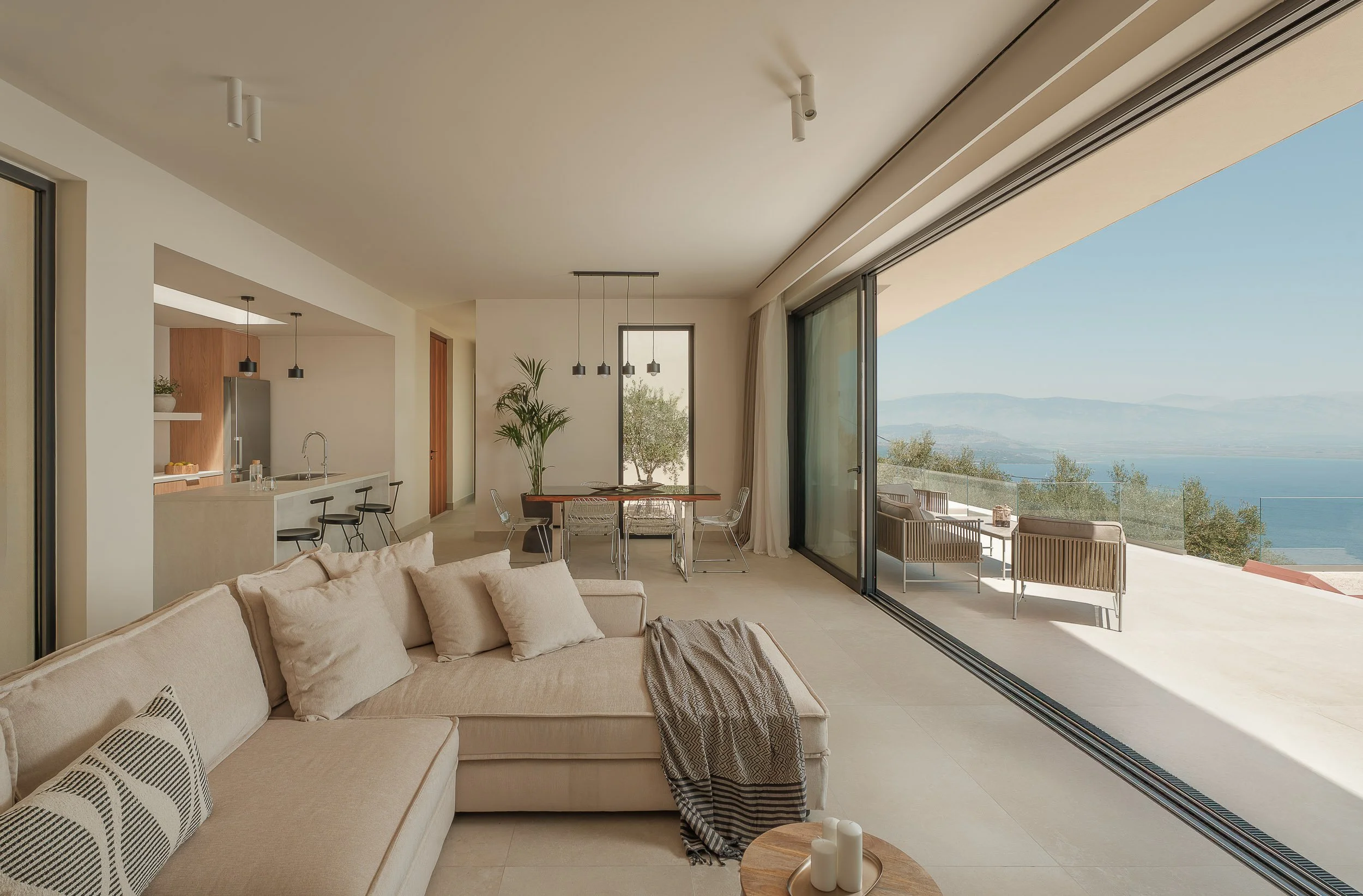 The common areas include a fully equipped kitchen and an open-plan living and dining area that boast the most uninterrupted views. The grand terrace of Villa Porta offers an outside dining area, BBQ facilities, and a long stretched pool (12m x 3m, 1.45m depth) with an outdoor shower that will make your swim one to remember!